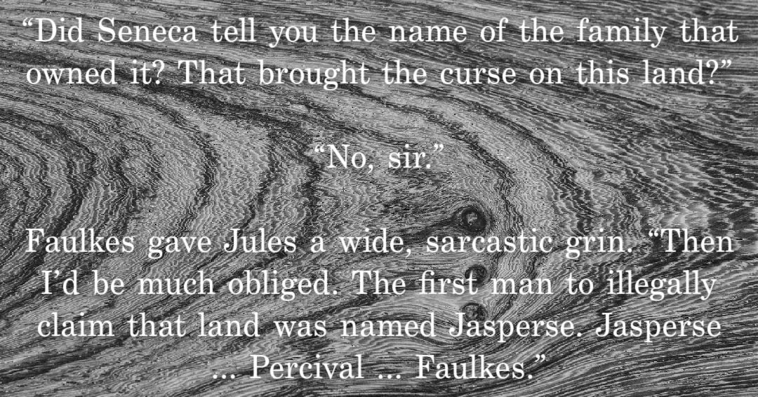 “Now, I’ll be honest with you, son. I may not be a cold-blooded ass like Jasperse Faulkes, but I’m still a white man who never dallied much into the specifics of each Native nation’s spiritual stuff. They keep it close, rightfully so, but that means I don’t know how that curse works, you hear? I just know they had more connection with that land than anybody else, and it listened to them,” Faulkes said. “That land lost the people who loved it, and it decided it wasn’t gonna never love these newcomers back. My ancestors tried for years to make that land work.”